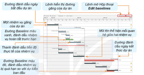 Đường Baseline màu đỏ, đánh dấu nhiệm vụ bị quá hạn so với dự kiến ban đầu