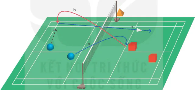 ♦ Chiến thuật giao cầu và đánh cầu ở cuối sân khi đối phương đỡ giao cầu bằng các đường cầu cao xa sang cuối sân. Khi thực hiện chiến thuật này, bên giao cầu sử dụng kĩ thuật giao cầu thấp gần (H.3a), đối phương đỡ giao cầu bằng đường cầu cao xa sang cuối sân (H.3b). Đồng đội người giao cầu di chuyển về hướng cầu rơi và thực hiện bằng một trong những kĩ thuật: đập cầu (H.3c1), đánh cầu cao xa (H.3c2),... Người giao cầu bao quát và chịu trách nhiệm những khoảng trống còn lại trên sân.