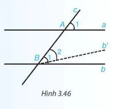 Theo dấu hiệu nhận biết hai đường thẳng song song ta có a và b' song song với nhau. Suy ra qua B có hai đường thẳng b, b' cùng song song với a. Theo tiên đề Euclid, b' trùng b. Từ đó suy ra